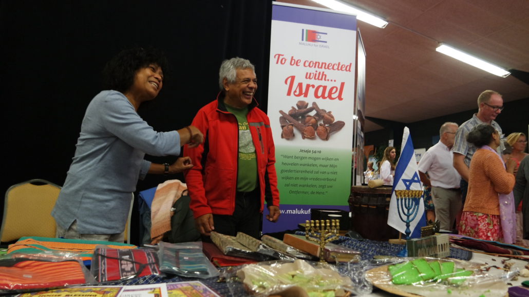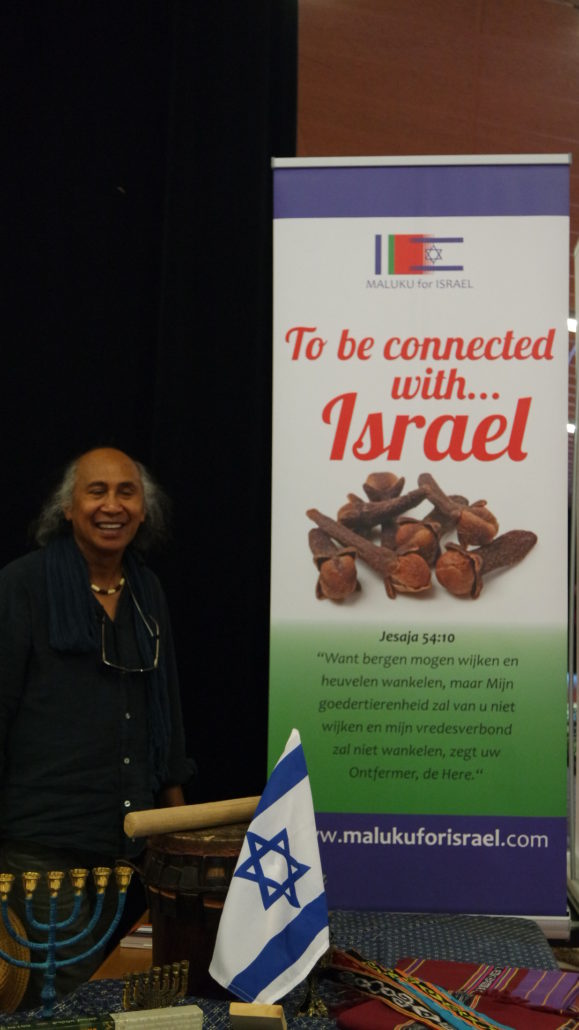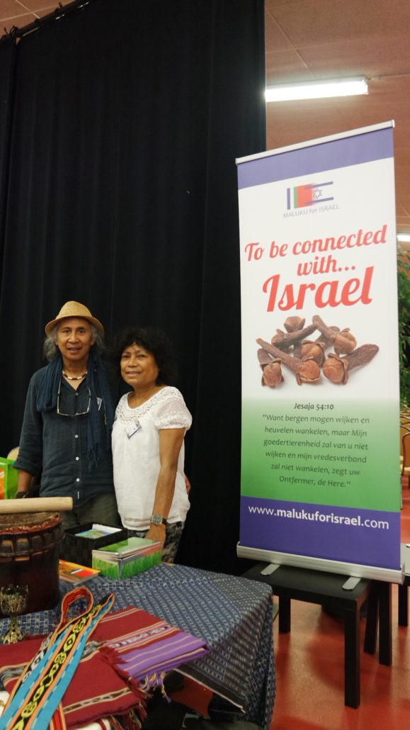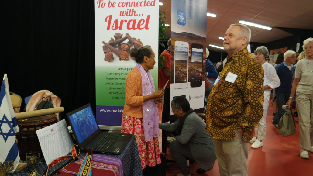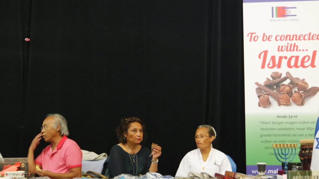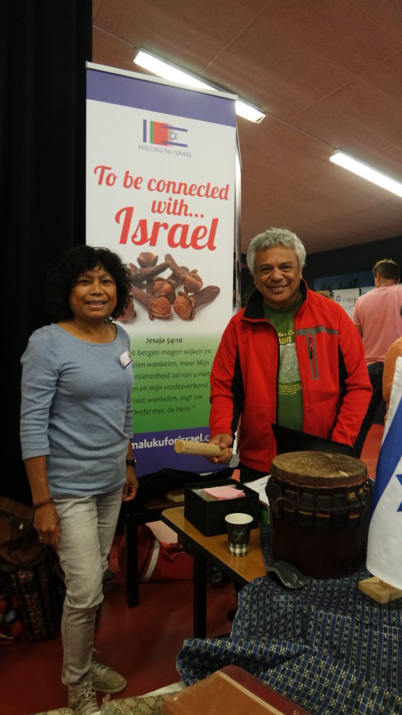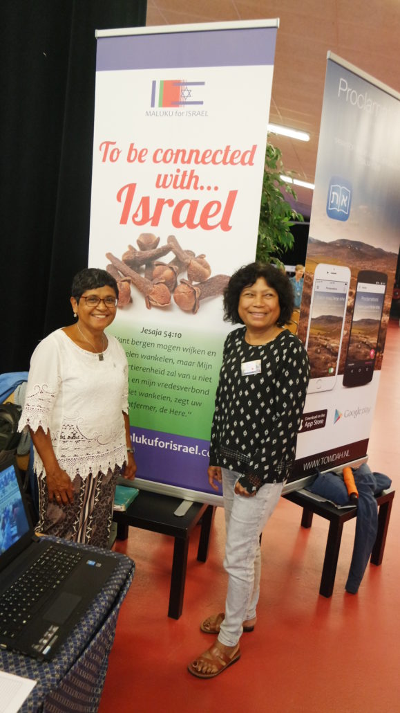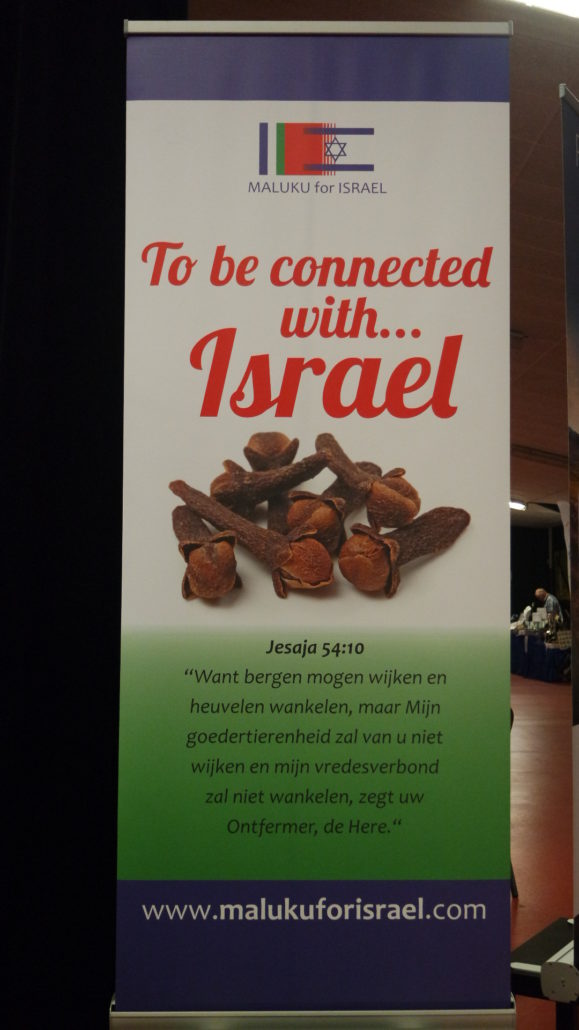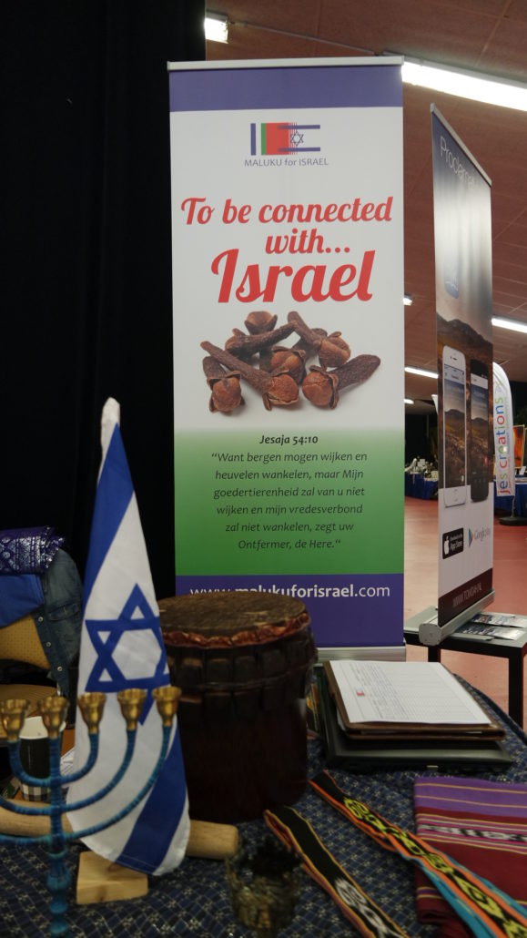 Het was heel bijzonder om er te mogen staan en ons als MfI te presenteren aan de Israël-vrienden. De gesprekken met de mensen aan de stand waren bemoedigend en soms ontroerend. Als Molukkers gaven we natuurlijk niet alleen informatie maar deelden ook lekkers uit, zoals spekkoek en sponscake, wat zeer in de smaak viel. We hadden een roll-up banner bij ons waar ons logo op staat en natuurlijk de kenmerken van ons Moluks volk: de kruidnagel. De kruidnagelen waren één van de kruiden die werden gebruikt voor het maken van het reukoffer dat in de tempel te Jeruzalem gebracht werd.