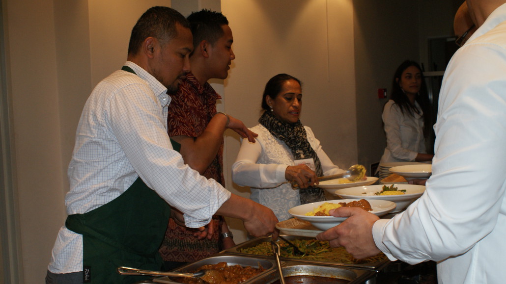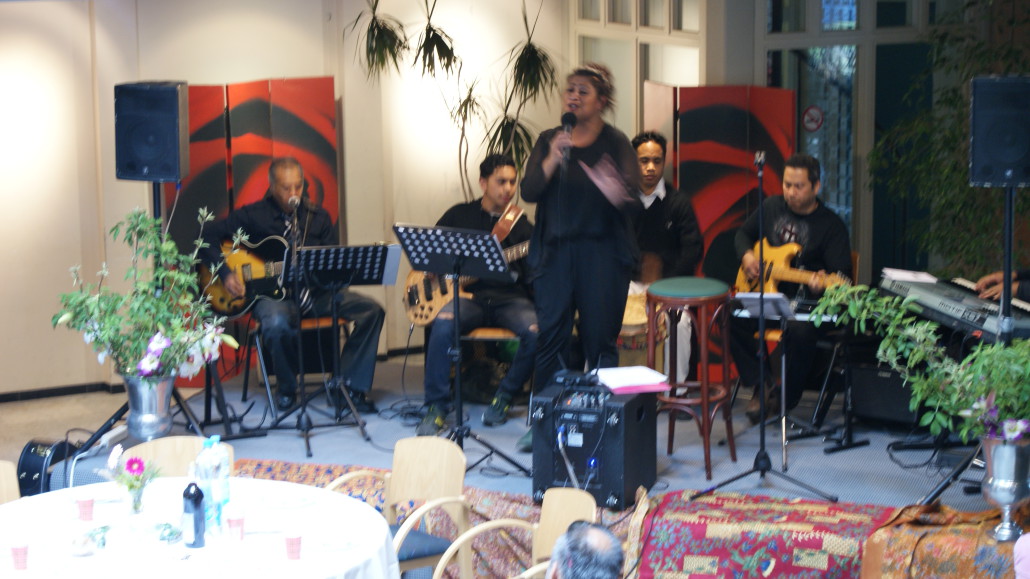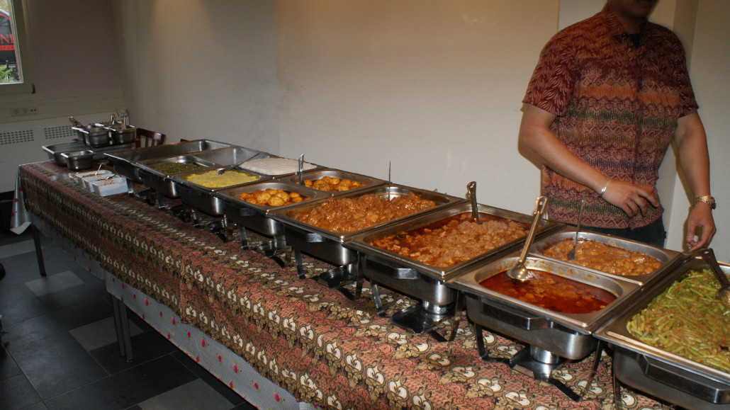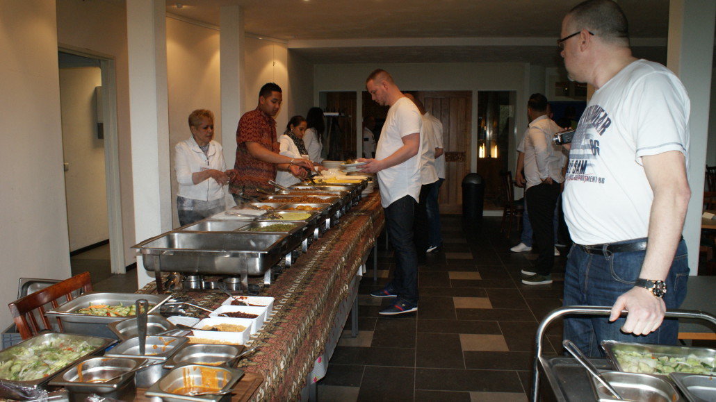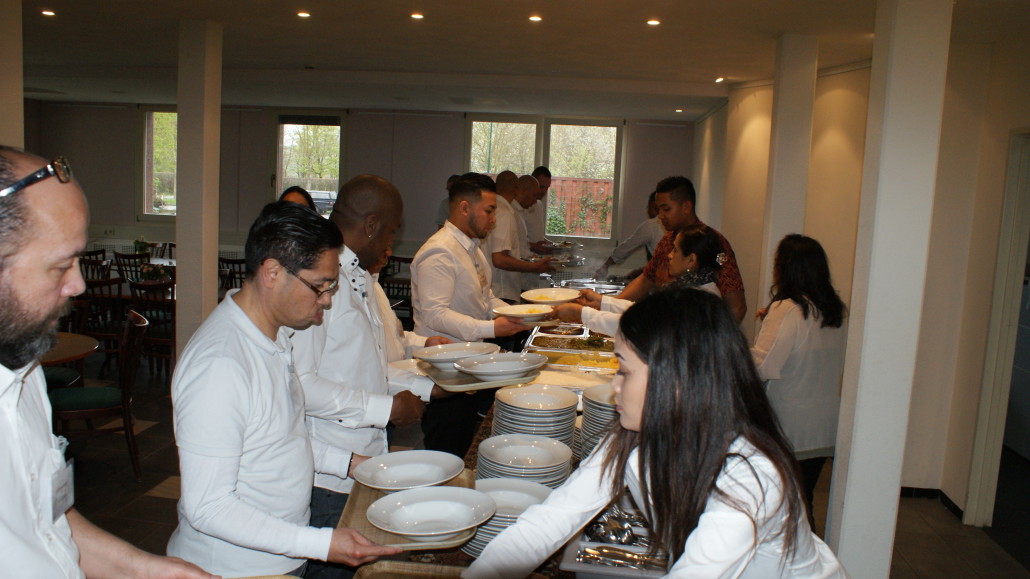 Na alle voorbereidingen die gepaard gingen met de nodige hobbels is het dan zover! Het gaat nu echt beginnen! Hoe zal het gaan, hebben we alles (niet dus), de tafels klaarmaken met alle benodigdheden voor de viering, de zaal versieren met sarongs, banier en vlaggen (gaandeweg wordt het steeds mooier), Lars de tuinman van het MKC helpt ons met de bloemen voor op de tafels, etc.